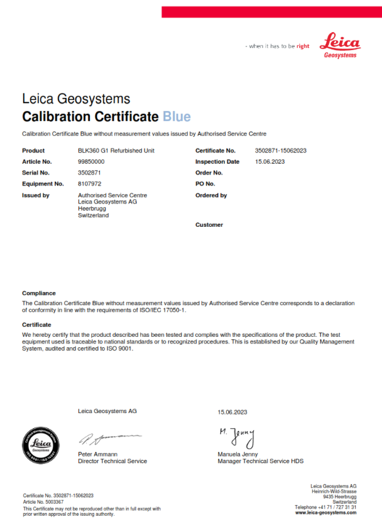 - Calibration Certificate